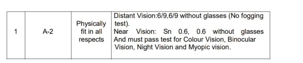 - అభ్యర్థులు A – 2 మెడికల్ స్టాండర్డ్స్ కలిగి , ఫిజికల్లి ఫిట్ ఇన్ ఆల్ యాస్పెక్ట్స్.